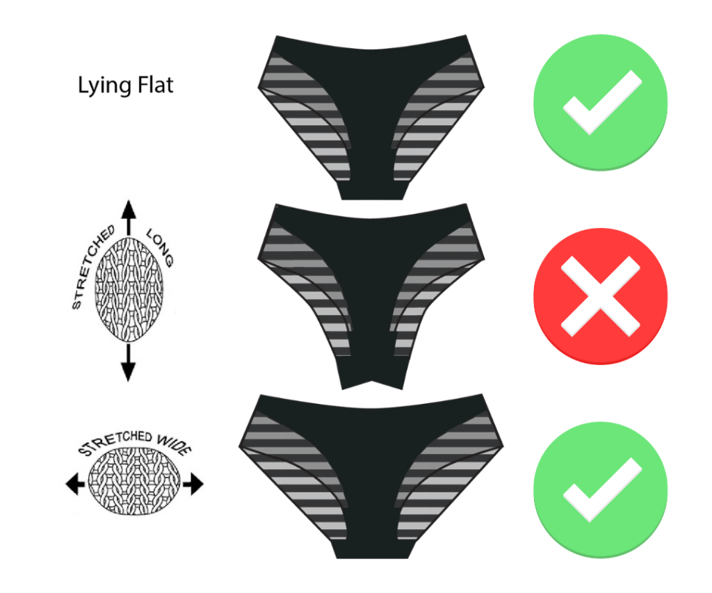 We realized one way to fix the wedgy problem was to adjust the orientation of the stretch. While the mesh fabric stretches in both a horizontal & vertical direction, it does stretch more in one vs. the other. It was originally oriented with the more stretchy direction vertically. By switching the stretchier direction to horizontal, the panty can better stretch over different butt & belly shapes without creating wedgies. We’ve just gotten in a sample with this new direction & we’re doing a fit test this week. Our fit tests take a little longer because we test with FIVE sizes rather than other brands that only use one.